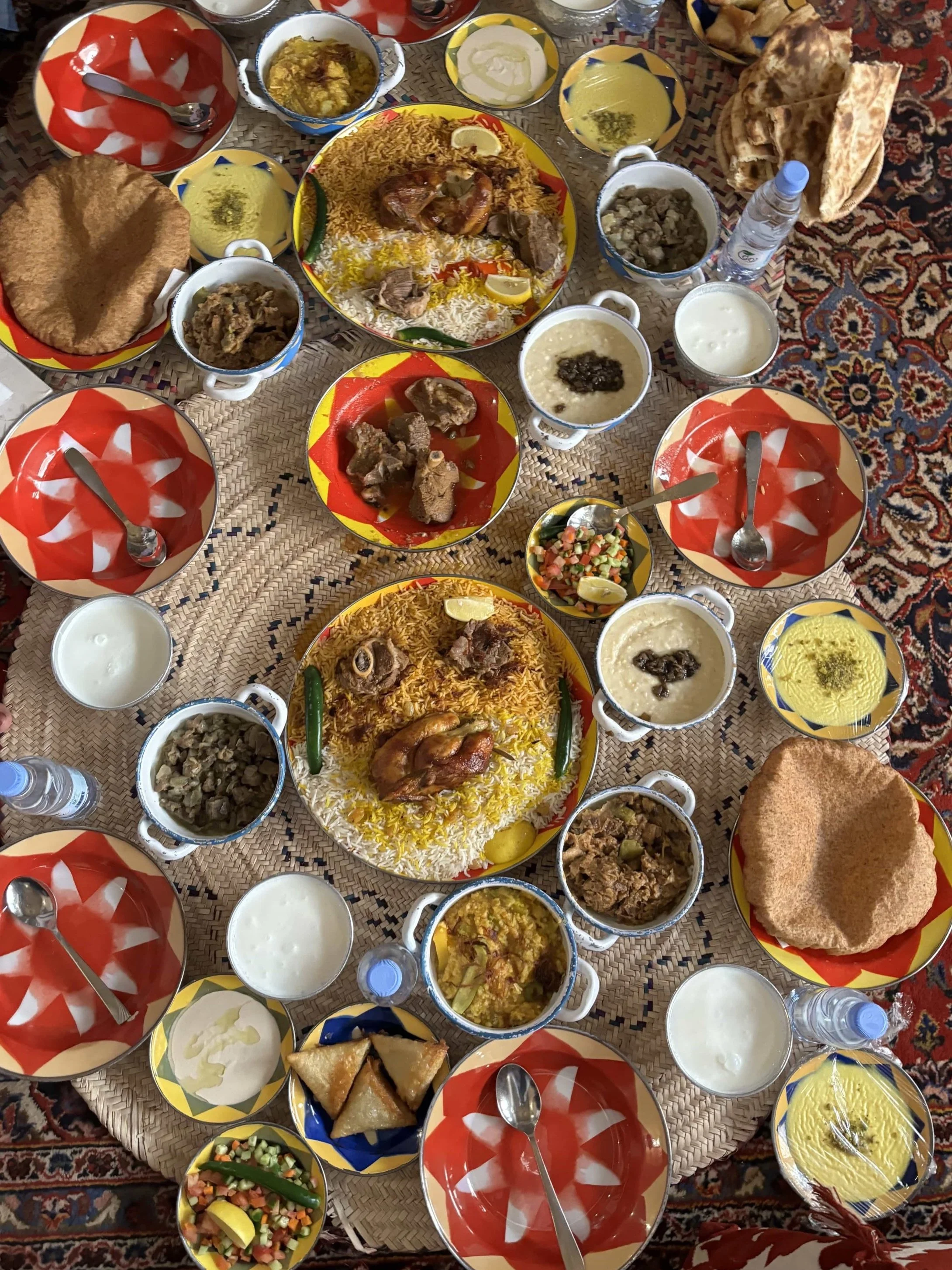Similarly, the Najd Village restaurant might have been an obvious choice for food on the tourist trail, but what it offered in terms of authentic Saudi dining made it worth the visit. In its traditional-style mud-brick building, diners can retreat from the sunshine into the cool foyer and enjoy ultra-strong Arabic coffees and dates on the Bedouin carpet, before being seated amid locals and visitors in the main restaurant. Our guide took us on a tour of Najdi cuisine via a sofra banquet, which typically involves two types of rice, stewed lamb and chicken kabsan (grilled chicken), a porridge-like dish made of crushed wholewheat in milk called jareesh, dense, flat dumplings in meat stew known as matazeez, flatbreads, pickles and salad. The order for two could easily have fed four or five, and as we feasted, we were told that dining together is the best way to experience local hospitality, as Saudis believe that to have friends to eat with is a blessing. It's why entertaining is taken rather seriously and can last many hours - both at home and in restaurants.